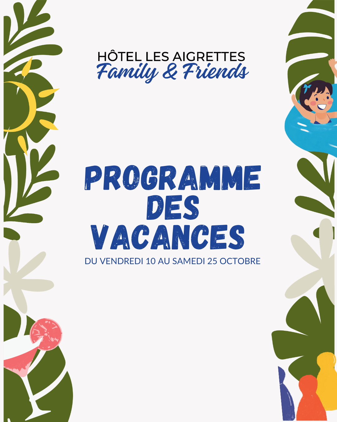 - Toutes les animations et les activités de la période des vacances pour les familles et amis sont à découvrir dans ce document.