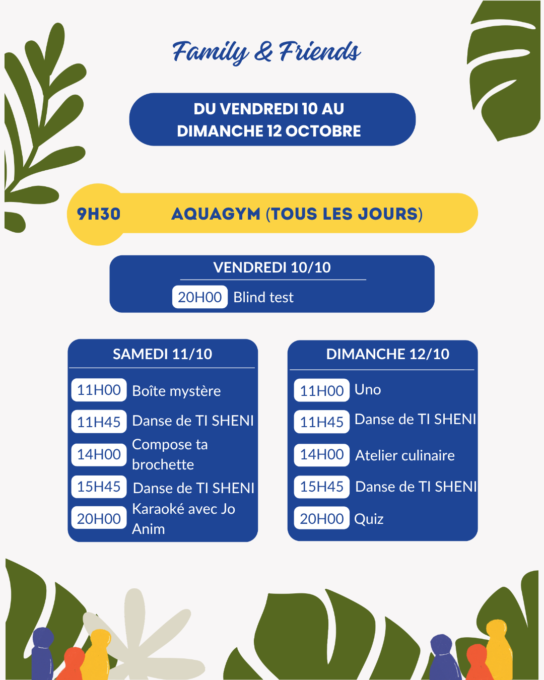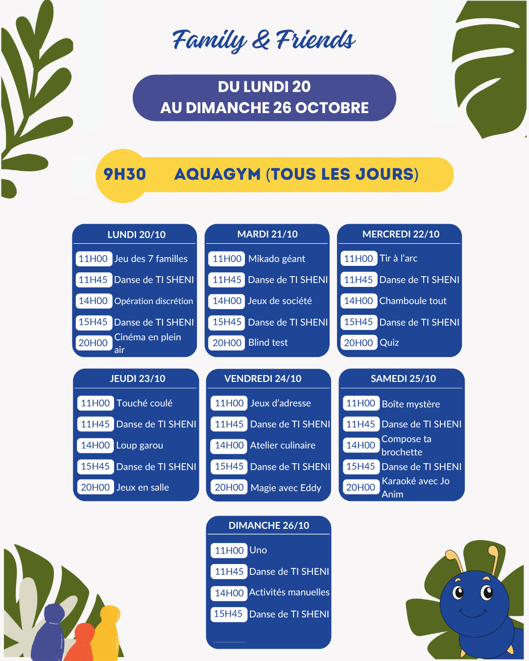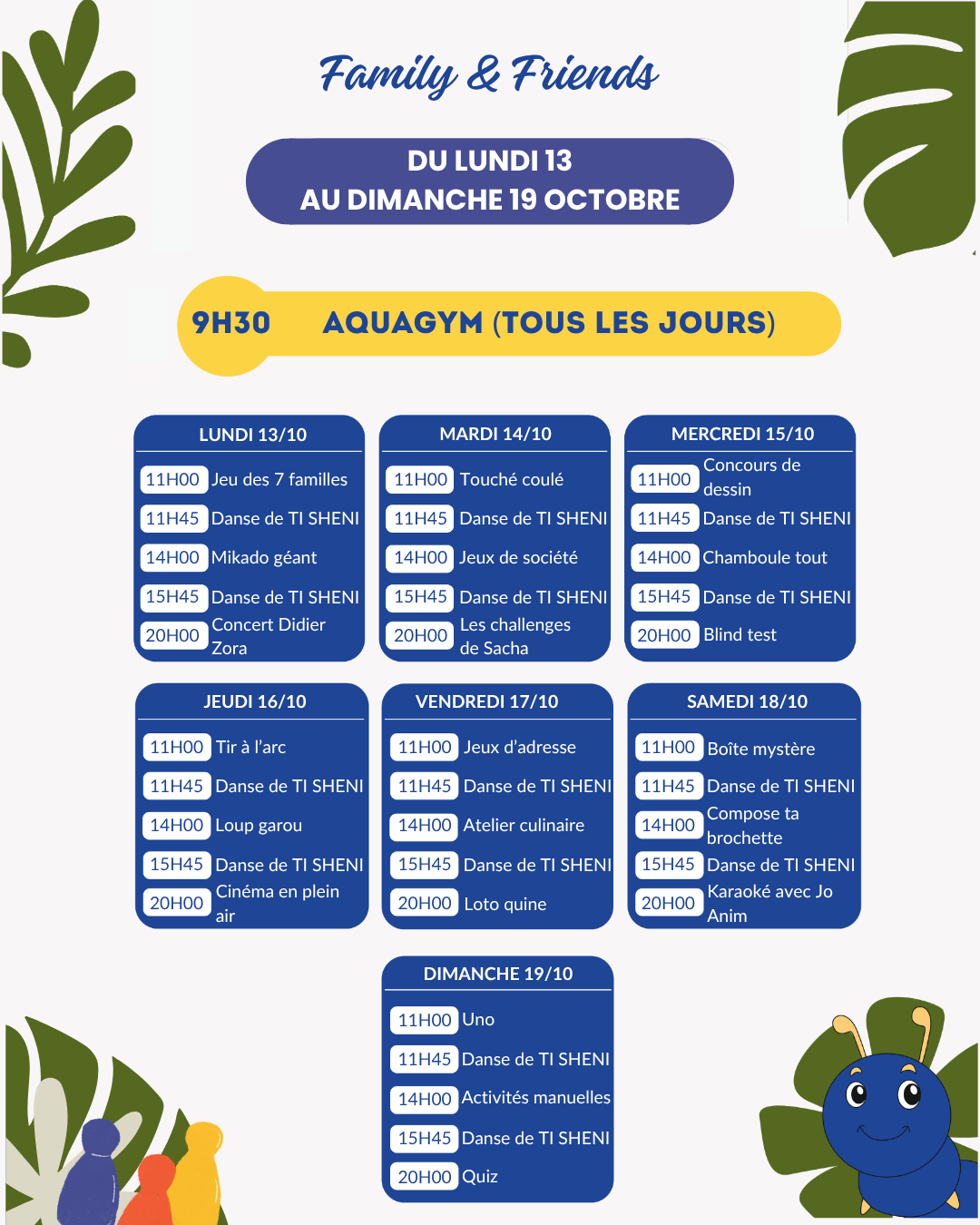- Chaque jour, de nouvelles activités pour tous : du tir à l’arc à 16h30 le jeudi au tournoi sportif ‘Tl SHENA’ le samedi après-midi.